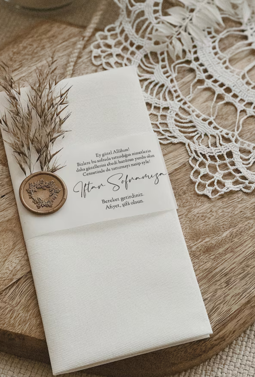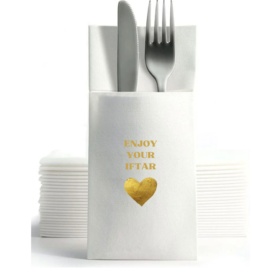 Personalisierte Servietten verleihen deinem Ramadan-Tisch eine einzigartige Note. Jede Mahlzeit wird zu einem besonderen Ereignis, das die individuelle Bedeutung des Ramadan feiert und persönliche Verbindungen stärkt.